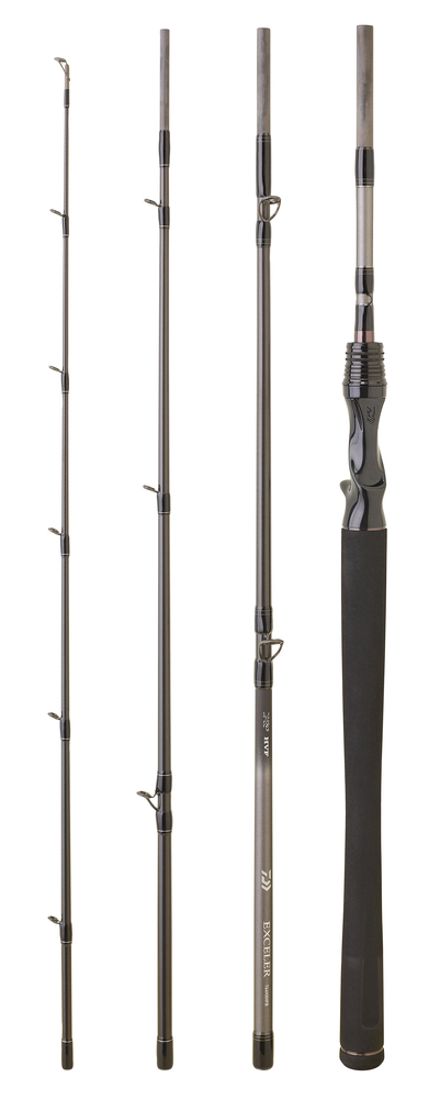 Equipadas do carbono HVF de alta qualidade e tecnologia X45, as canas de baitcasting multielemento Exceler são dotadas de um blank leve e sensível.