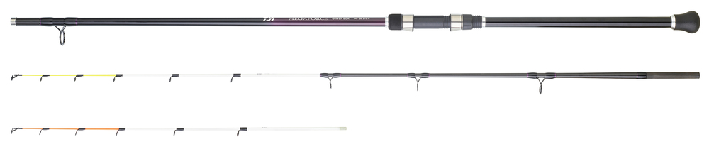 As Megaforce Boat são canas fortes concebidas para as pescas profundas ao fundo que exigem grande sensibilidade. Estas canas poderosas possuem 2 ponteiras em fibra de vidro maciço entregues num tubo. Ponteira amarela em 50-100 g e ponteira laranja em 125-250 g.