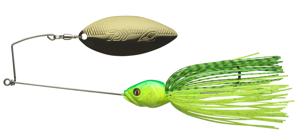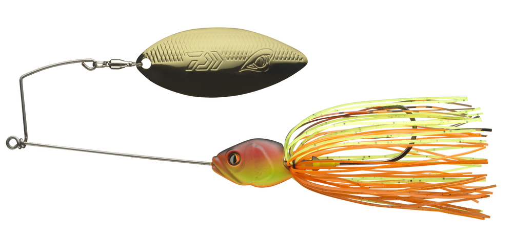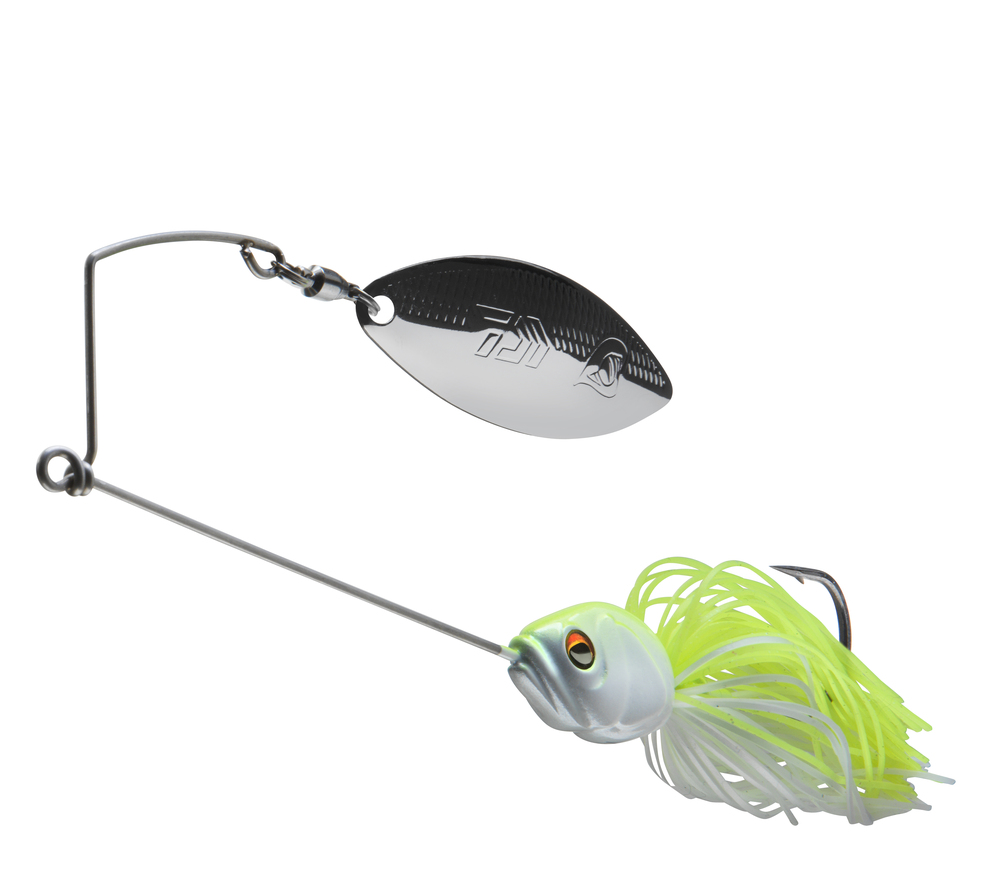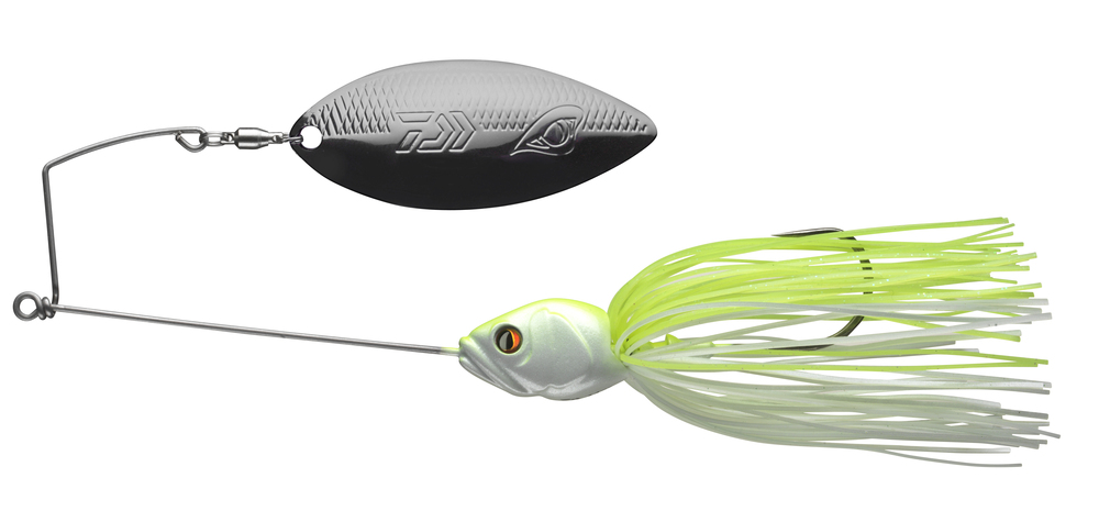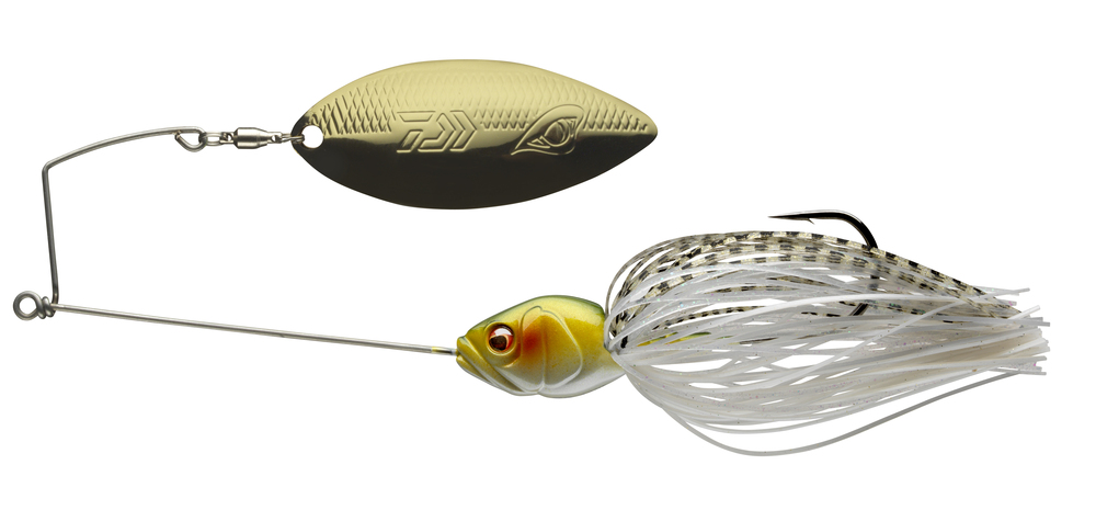 Lastro em liga densa com formato realista de tamanho 1/2 (14g) e colher willow longa. Saia de silicone e sistema de retenção na haste para colocar um “trailer” de 4’ ou 5’ polegadas (10/12,5cm).