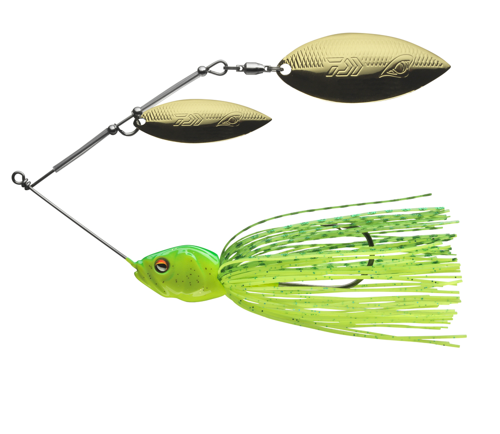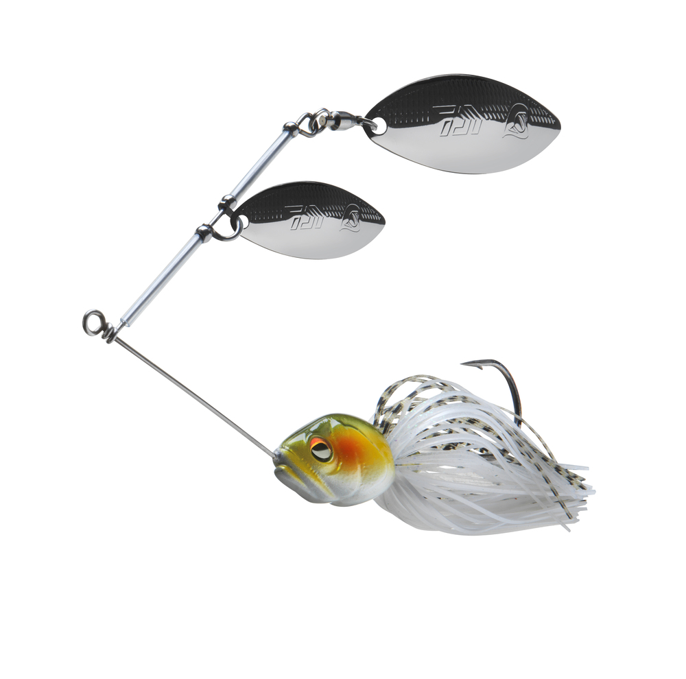 A montagem de dupla colher longa, do tipo willow, permite prospetar facilmente nas camadas superiores dos pesqueiros, e a combinação das duas colheres alongadas confere ao spinner bait amostra de spinner um aspeto natural.